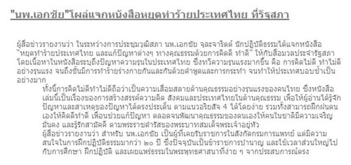 ๒๘ สิงหาคม ๒๕๕๒ หนังสือเรื่องหยุดทำร้ายประเทศไทย ฯ